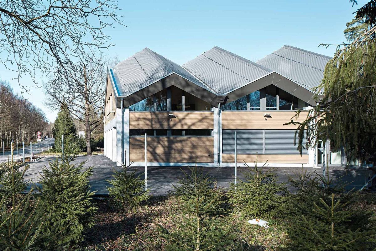 Das in den 70er Jahren erbaute Forstbetriebsgebäude, mit seiner auffälligen Dachlandschaft ist im Bremgartenwald das Gesicht des Forstzentrums der Burgergemeinde Bern.